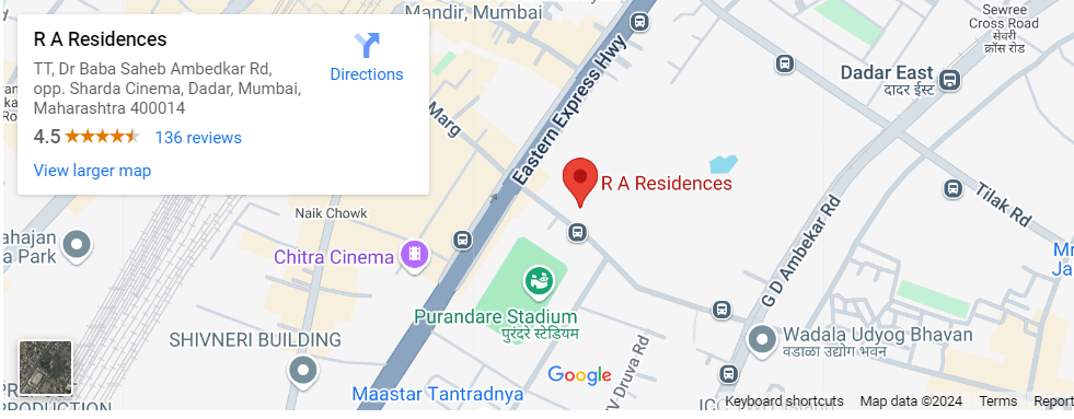 RA Residences a premium residential Project by Khemchand B Kothari & Company with all modern amenities is strategically situated in Dadar East. The Building is designed and well planned and all the apartments face Bandra Worli Sea Link. A residential complex that is vibrant and multifaceted in what it offers to its citizens.The project with 4 levels of car parking, entertainment level on 5th floor and first habitable floor starting from 6th floor onward thus ensuring that even the first floor gets a complete sea view. The project is located adjacent to Dadar Fire Brigade.Adding to this, it is situated close to the market, hospital and various educational institutions. The Project is strategically located in the heart of Mumbai Central District. It offers unmatched access to Mumbai key destinations, emerging hubs and the suburbs. The project is located on the Eastern Expressway to enable fast intra-city movement.